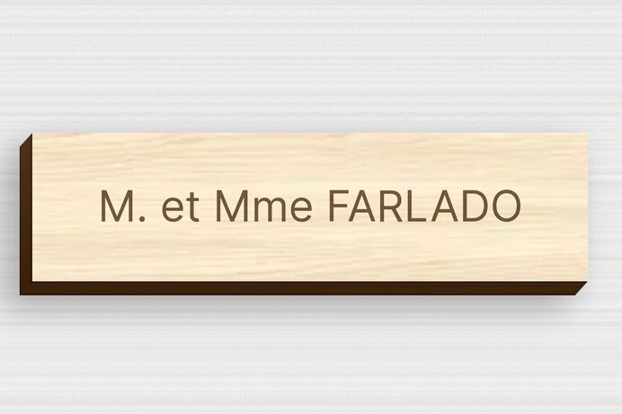 Très beau produit. J'ai commandé une plaque pro en bambou, il y a beaucoup de choix pour la couleur ou les images. Elle est très jolie. Le visuel présenté à la commande est identique au produit reçu. Plaque en bois reçue bien emballée avec les visseries et caches- vis. Prix très intéressant.